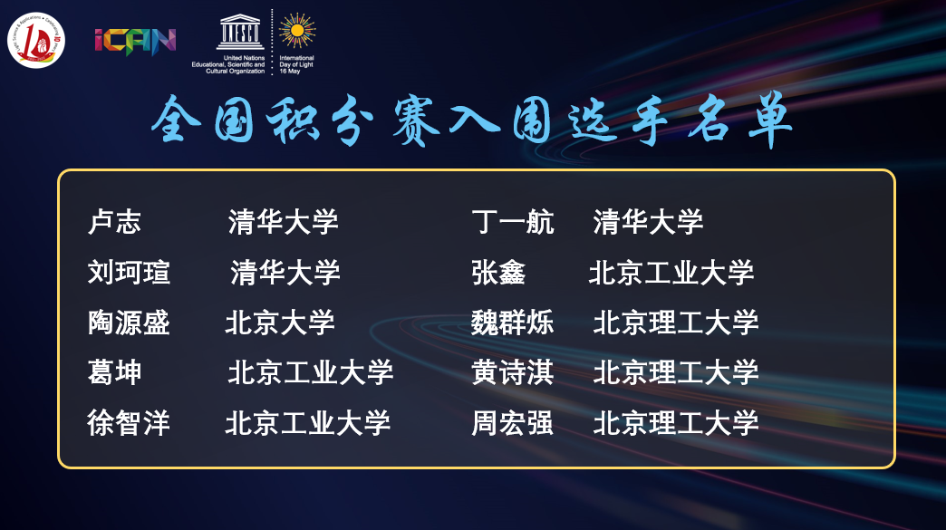 2022年2月26日,由Light: Science & Applications联合国际著名科技创新与学术交流平台iCANX组织,由北京光学学会、清华大学和北京工业大学承办的 2022全国光学与光学工程博士生学术联赛北京赛区的赛事落下帷幕。此次比赛共有来自北京市高校与研究所的21名博士研究生参加,采用线上学术报告的竞赛形式,由来自北京大学、清华大学、北京理工大学等科研院校20余位专家老师组成评审委员为参赛选手打分与点评。