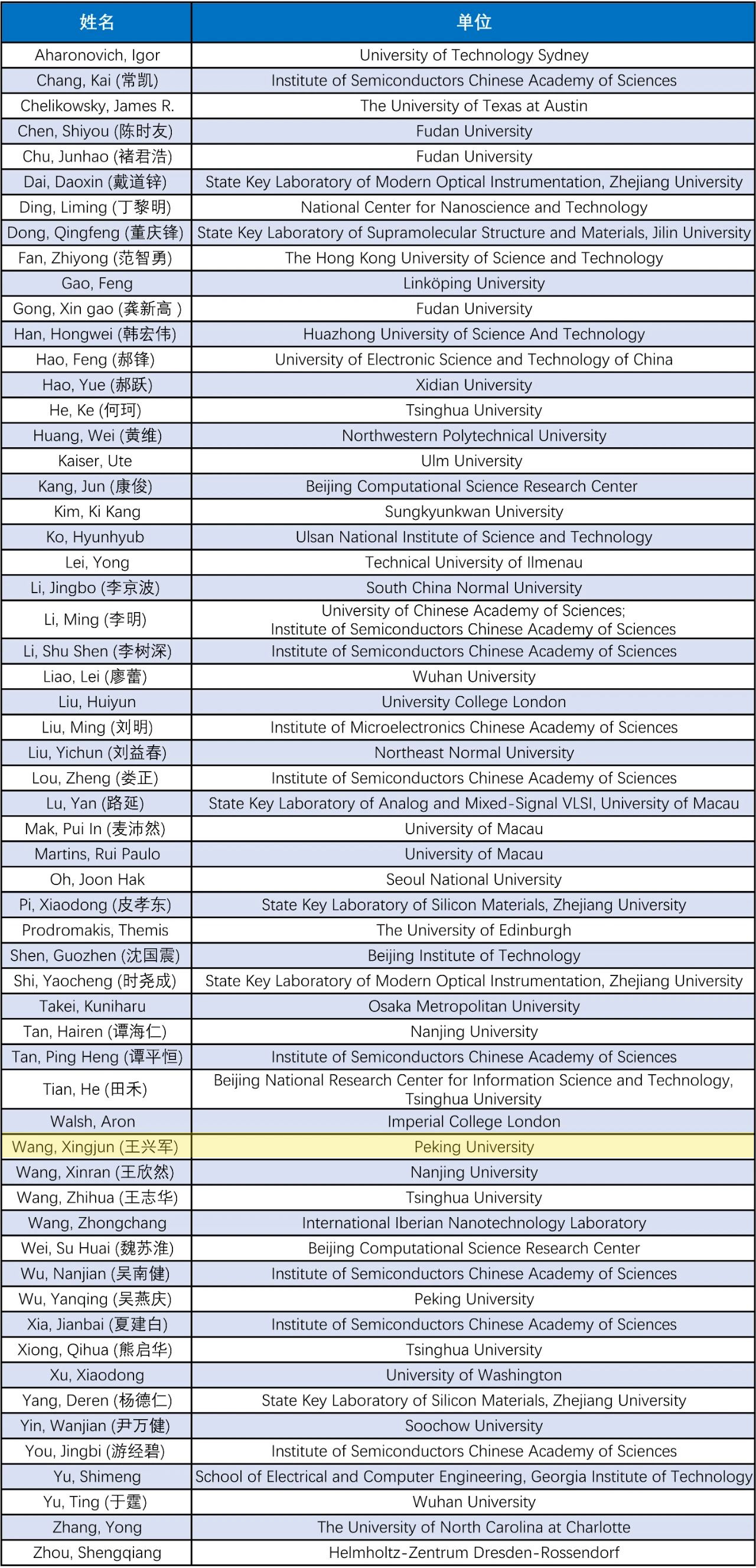 年度科学影响力榜单(按照姓名排序)