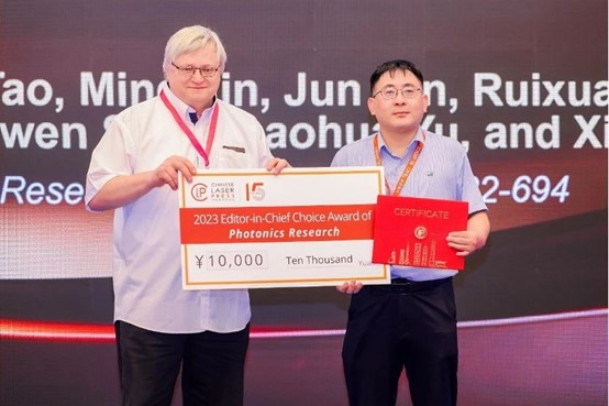 图1 副主编Yuri Kivshar(左)为作者代表北京大学王兴军教授(右)颁奖